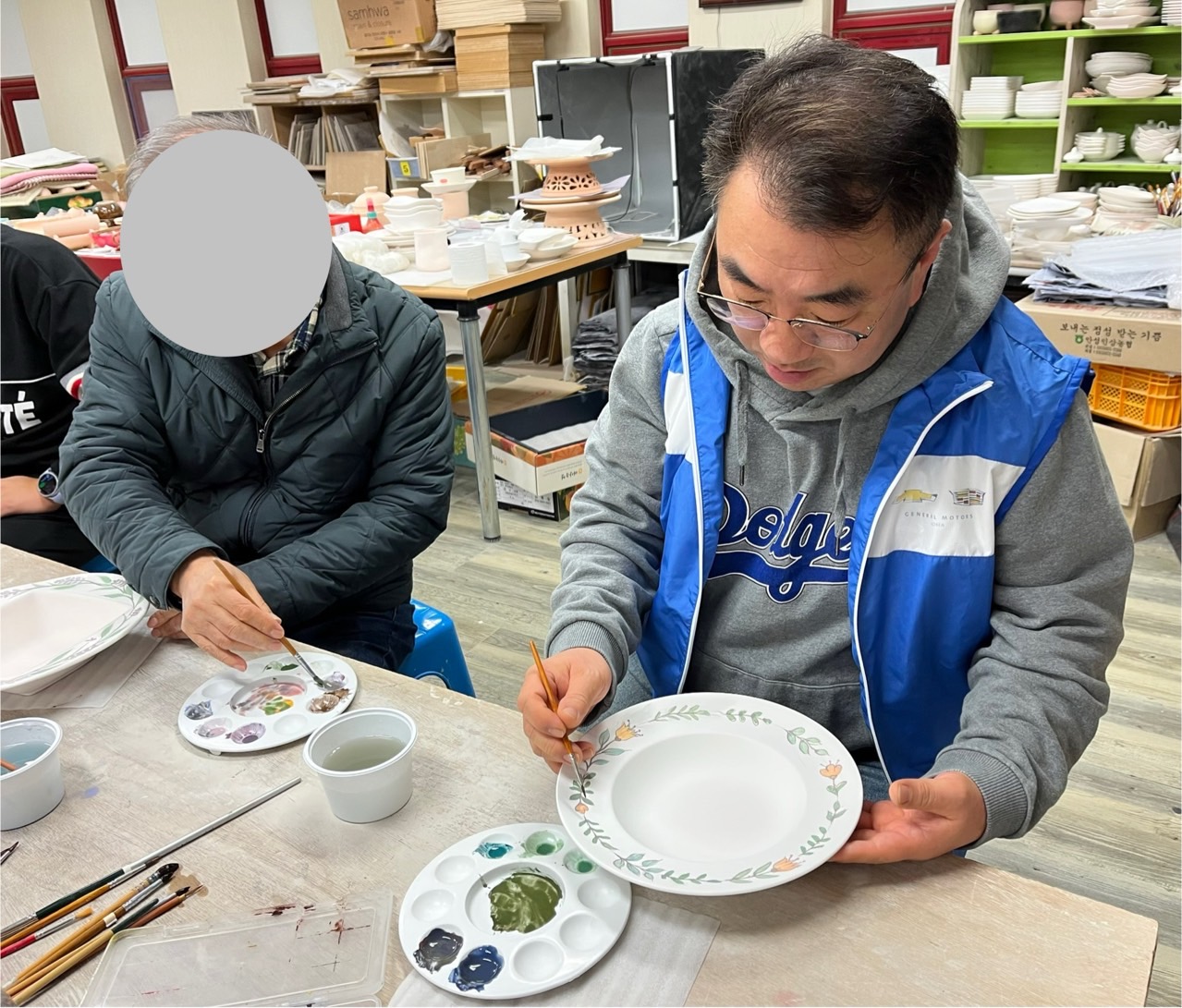 11/27 노틀담복지관 도예공방 쟁반 접시 핸드페인팅 작업