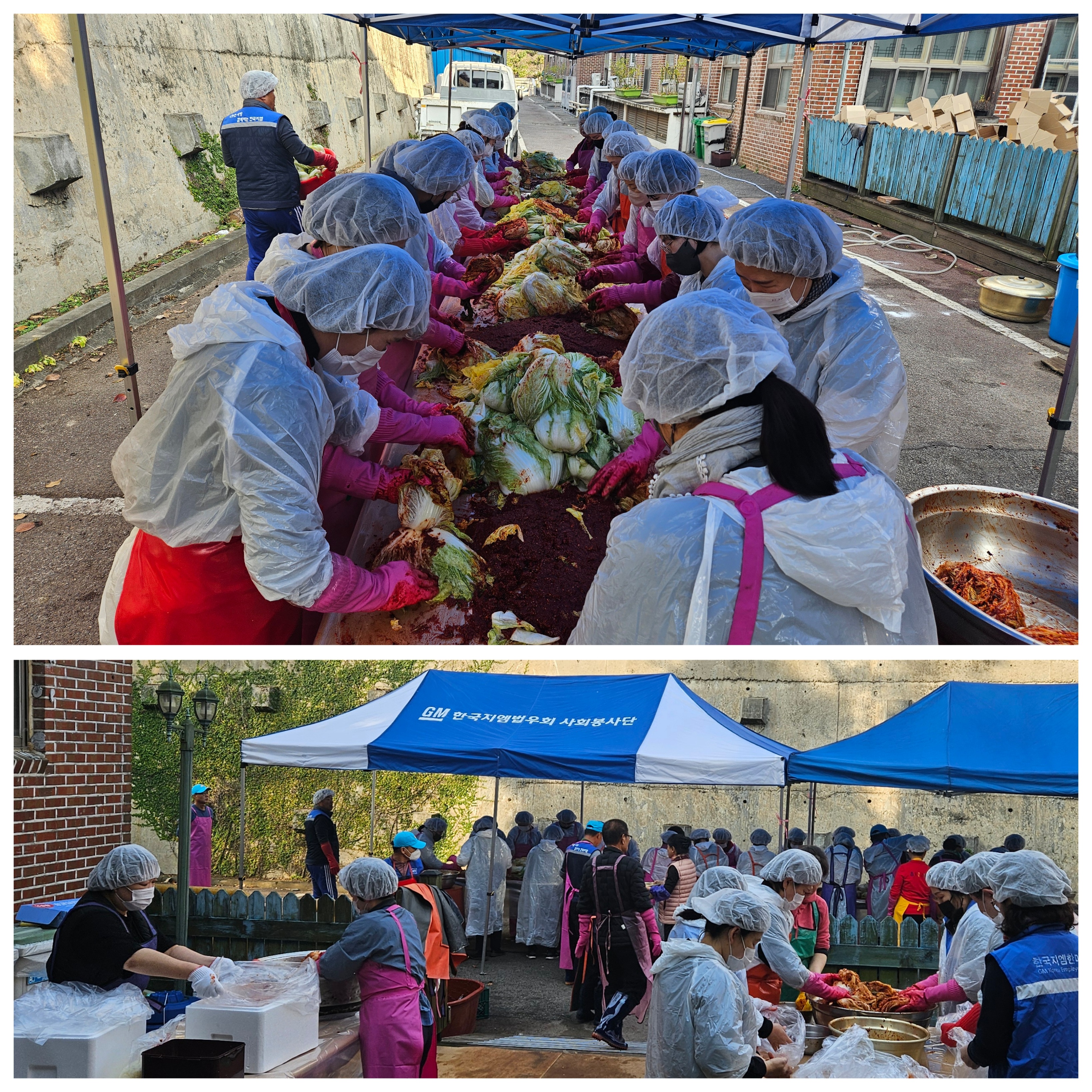 재가독거어르신및요양원 어르신 김장김치(1200포기)담그기. 갑작스런 회사생산특근으로 인해 부득히 평일로 일정을 변경 하였는데 후반조 근무자와 법우회 가족들이 많이 동참하여 무사히 잘 마무리 하였습니다.